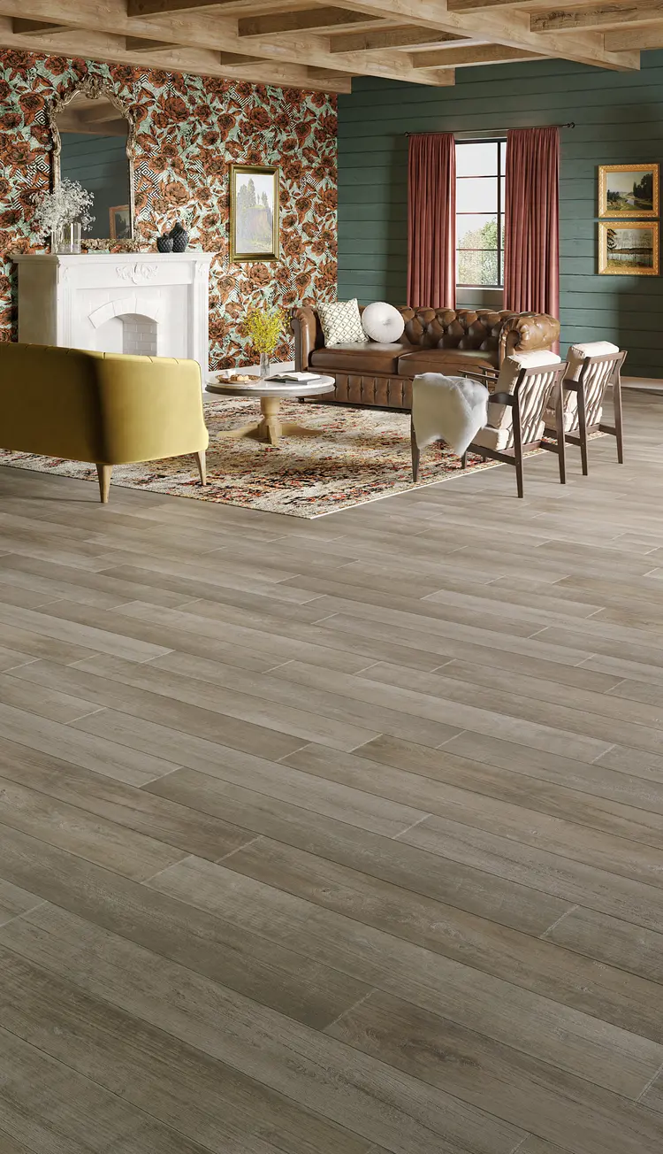 Create an insta-worthy, picturesque interior with the warm, cottage style of Calico. Capturing the nostalgic flair of worn, weathered wood, Calico combines subtle saw marks and splits with a unique fuming technique that creates visual depth and interest. Each plank offered in a 7” x 48” format is accented by a crafted edge, creating a very traditional floor that can transform any home into a countryside farmhouse. Exclusive to Mannington, CraftedEdge™ technology creates a chiseled hand-crafted bevel found on today’s most luxurious floors. Mannington’s design team worked tirelessly to develop an industry leading technology which evolves our new wood designs to the next level of realism, making our floors featuring CraftedEdge™ technology look like authentic hardwood.